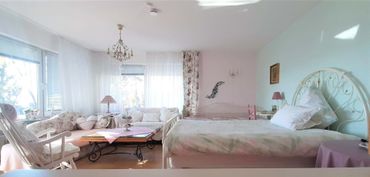 Diese lichtdurchflutete Wohnung bietet durch ihren Panoramafenster das Gefühl, direkt in dem grünen Garten eintauchen zu können. Die Harmonie und die Leichtigkeit der Räume bieten 2-3 Personen in 1,5 Zimmern Platz zum Entspannen.