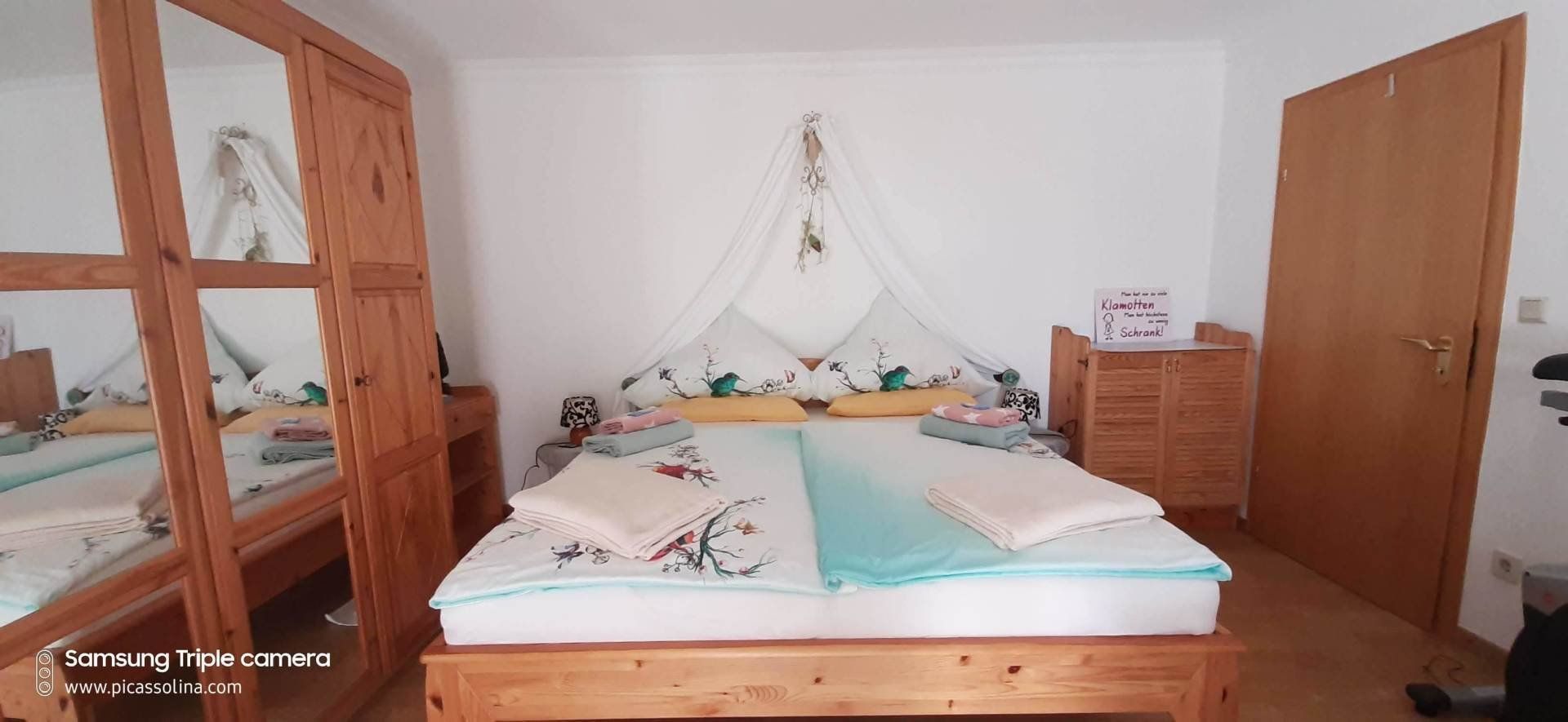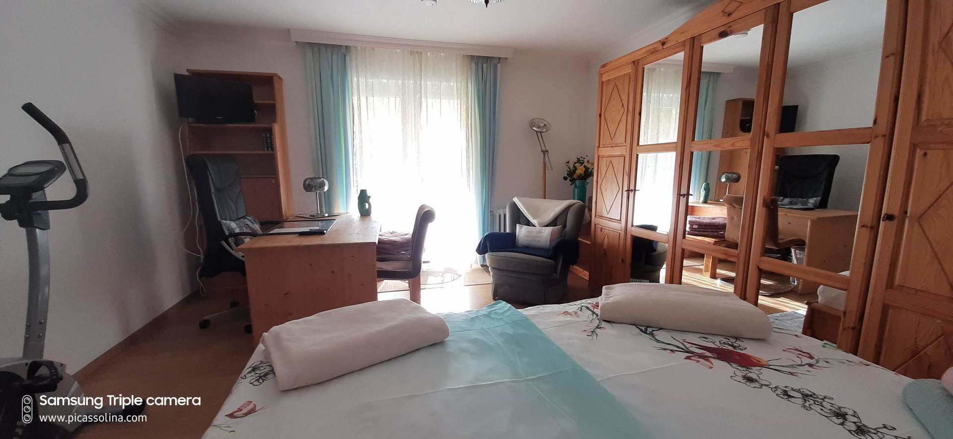 Kinderbetten, Zusatzbetten und weitere Zusatzausstattung bieten wir gerne auf Anfrage. Vom Schlafzimmer führt die Terrassentür direkt zum Gartensitzplatz.