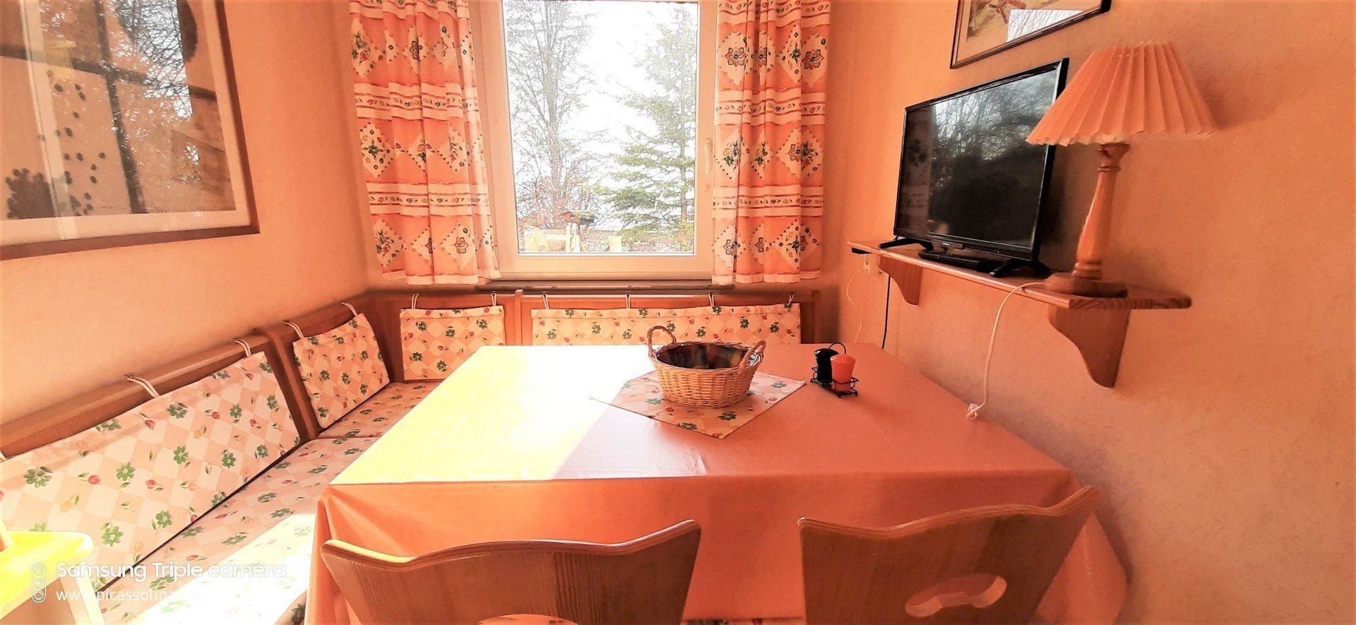 In der Wohnküche kann man in gemütlicher Runde auf der Eckbank Platz nehmen.